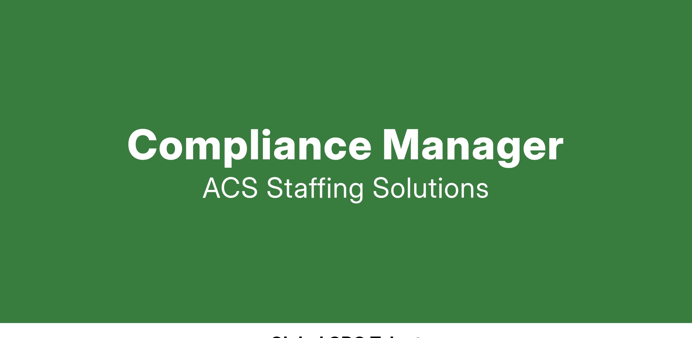 We are delighted to confirm ACS is teaming up with a well established U.K firm that is currently expanding, and as a result, searching for an experienced compliance manager to support this process.