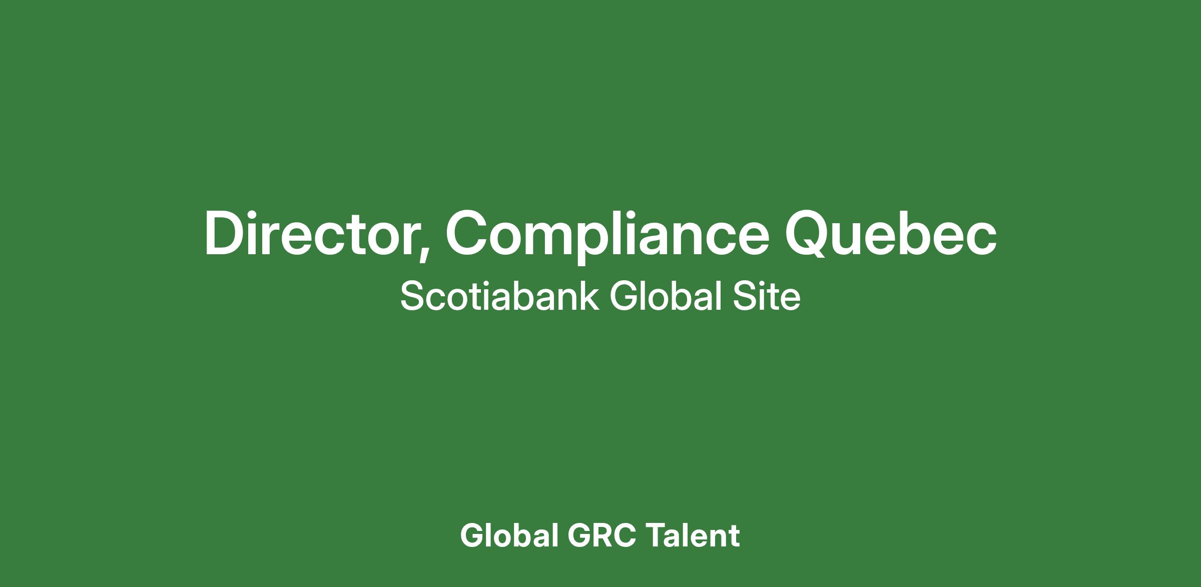 As an integral member of Scotiabank’s Global Compliance Leadership Team, the Director, acts as the thought leader in setting the strategy, oversight and execution of regulatory compliance risk management, with a primary focus on Quebec’s regional business priorities, with responsibilities that will eventually span other provincial and enterprise-wide regulatory initiatives. This role has overall responsibility for the independent assessment and management of regulatory compliance risk, aligned to Scotiabank’s strategic objectives and risk appetite while promoting a strong culture of ethics, compliance and integrity.