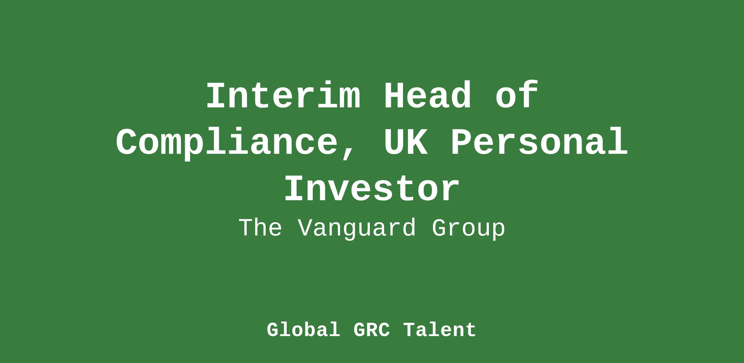 Interim Head of Compliance for Vanguard’s UK Personal Investor (UKPI) business