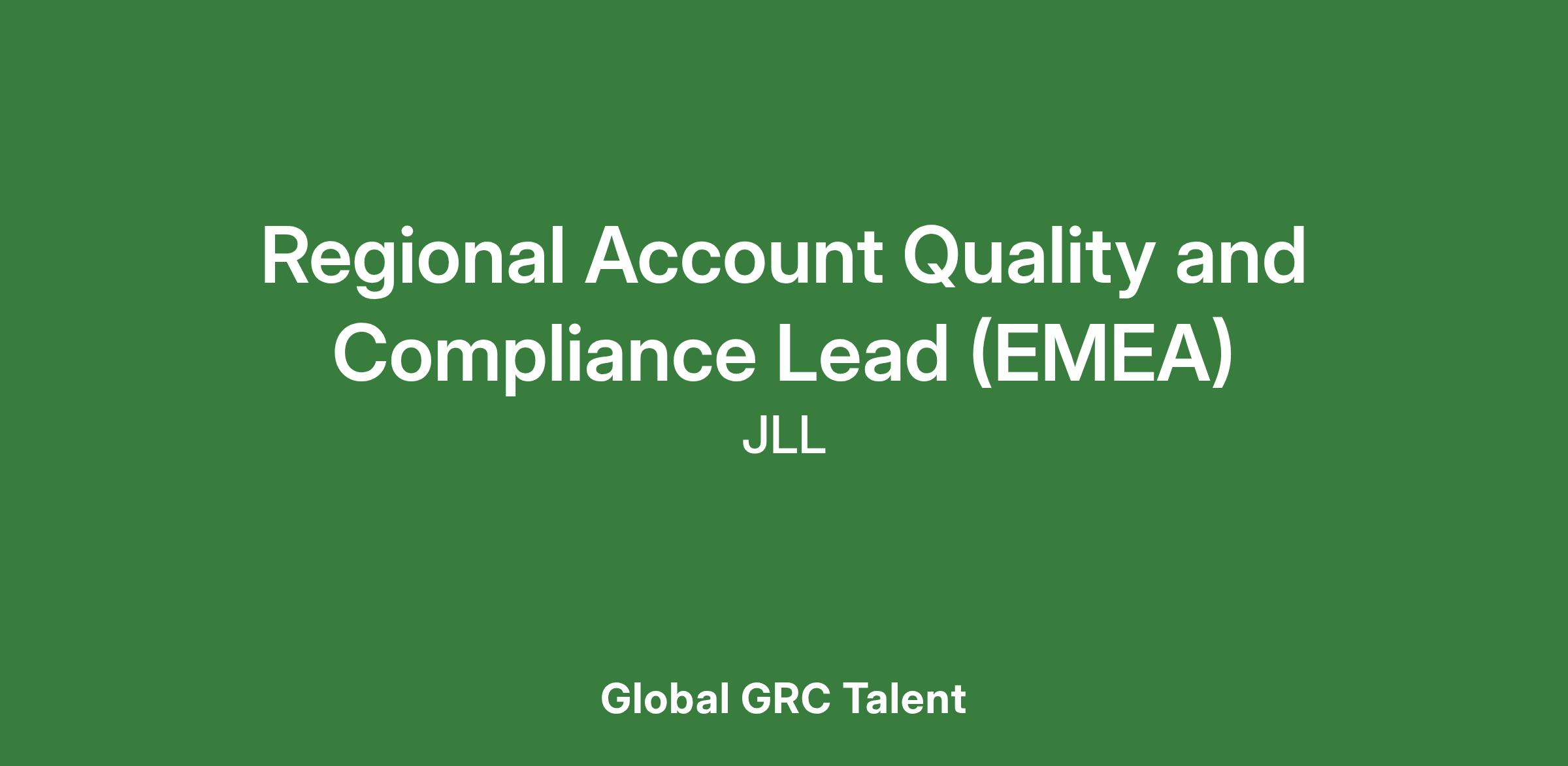The EMEA Account Quality & Compliance Lead provides quality oversight and support for work performed across multiple sites for a specific client account in the EMEA region, with particular emphasis on cGxP-related scope. The role holder is responsible for ensuring that work conducted by JLL facilities management teams, project teams and subcontractors at client sites across EMEA are performed in accordance with service agreements, quality agreements, JLL and Client procedures, ISO 9001:2015 and cGxP requirements. This role leads the Quality & Compliance team and activities for the account across the EMEA region. The role will also lead globally on coordination and collaboration efforts with the APAC and NAM regional Quality Leads, ensuring global alignment on reporting, quality programs and initiatives.