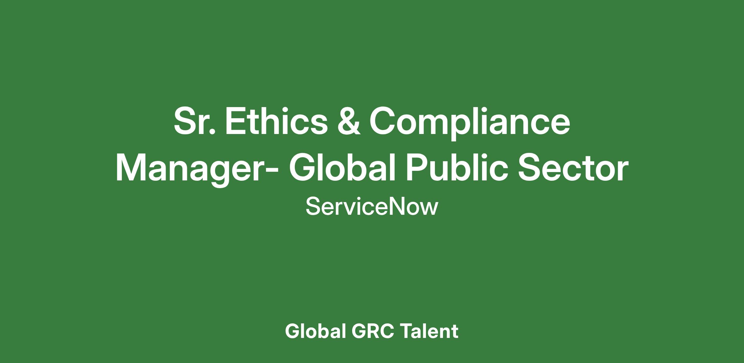 Sr. Ethics & Compliance Manager- Global Public Sector